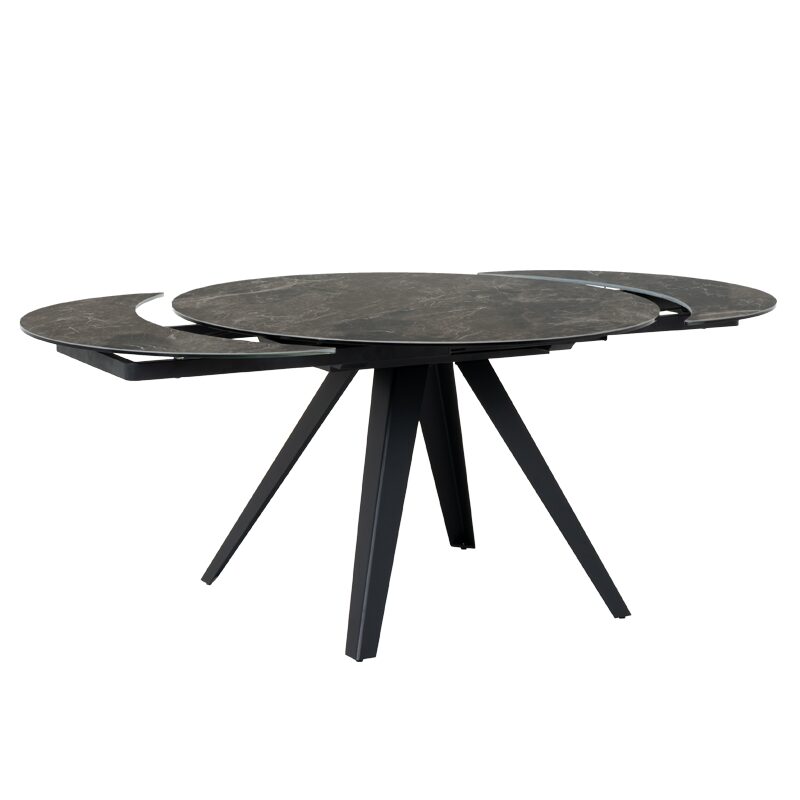 Трапезната маса BOLKOW е идеалният избор за стил и функционалност във вашата трапезария. Със своя елегантен кафяв плот от закалено стъкло и керамика с мраморен ефект, тя придава усещане за лукс. Здравата конструкция и иновативният механизъм за разтягане от 120 см до 180 см осигуряват гъвкавост и пространство, когато е необходимо. Насладете се на съвременен дизайн и безупречно качество в своя дом с трапезната маса BOLKOW.