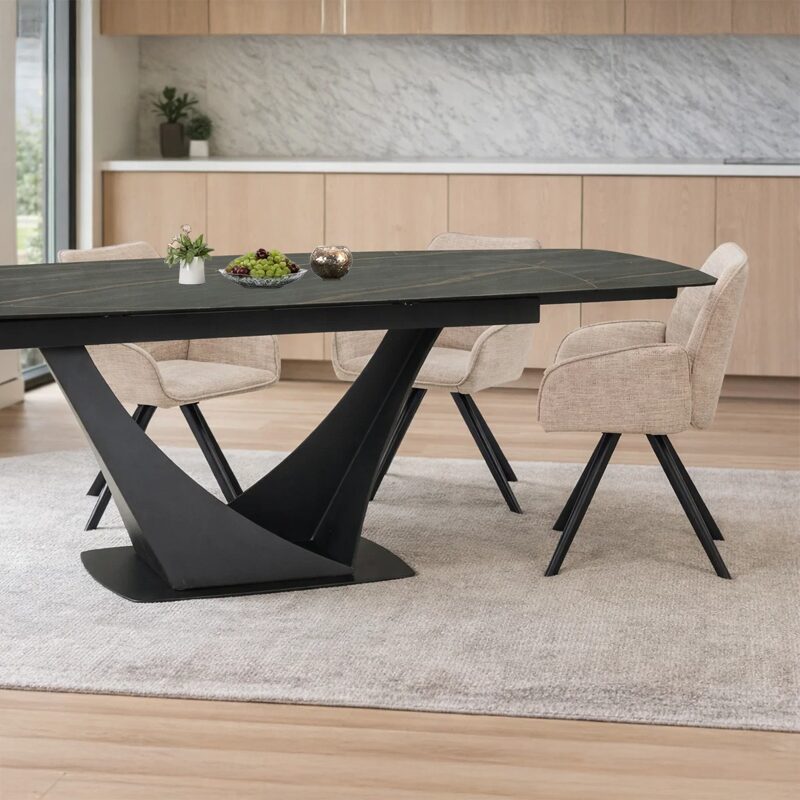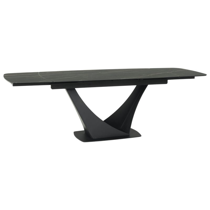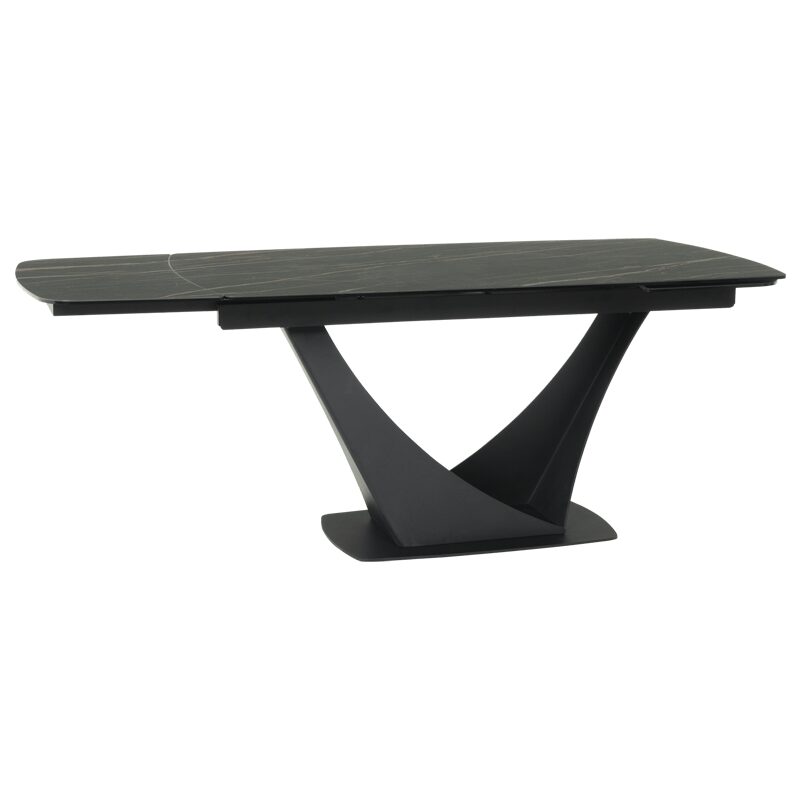 Открийте елегантността и функционалността с трапезната маса BOREK, идеална за просторни събирания. С размери 160 х 90 см, тя лесно се разтяга до 240 см, благодарение на двете странични плоскости. Изработена от висококачествени материали като праховобоядисан метал, керамика и закалено стъкло, тази маса съчетава стил и издръжливост. Перфектният избор за вашата трапезария.
