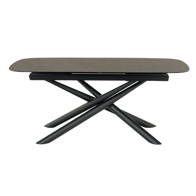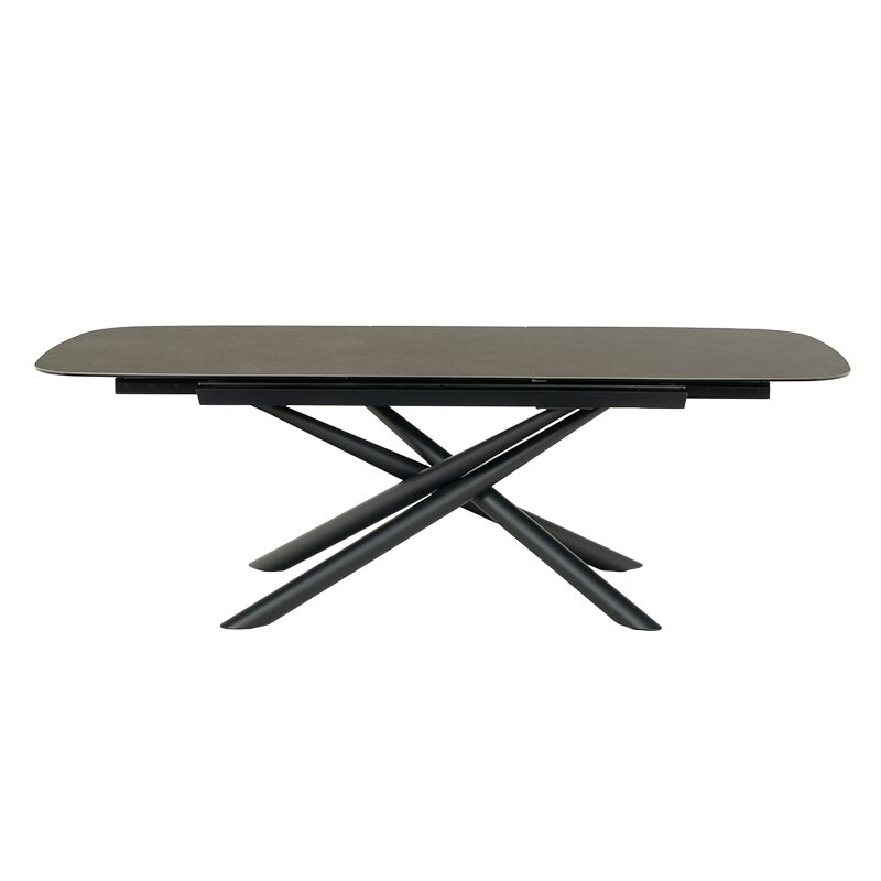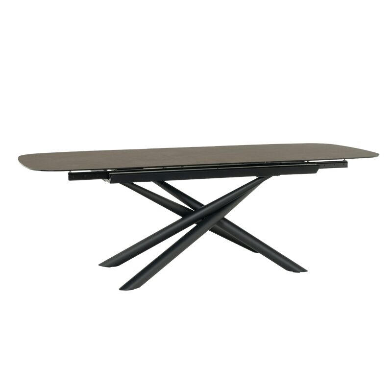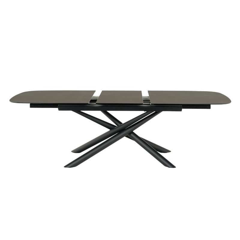 Увеличете пространството за вашите семейни събирания с разтегателната трапезна маса BROK X. Със стилен плот от закалено стъкло и керамика с дебелина 12 мм, тази маса предлага изключителна здравина и елегантност. Металните крака, праховобоядисани в черно, допълват модерния дизайн. Насладете се на гъвкавостта и качеството на този уникален мебелен продукт.