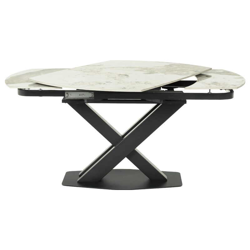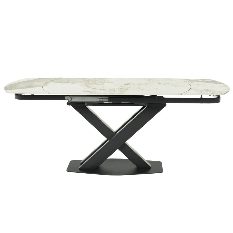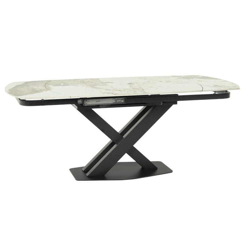 Разтегателната трапезна маса DIGORA L NEW е идеалното решение за стил и функционалност във вашата трапезария. Със своя елегантен керамичен плот с дебелина 12 мм и здрава праховобоядисана метална основа, тя предлага издръжливост и изискан дизайн. Лесно се разтяга от 120 до 180 см, което я прави перфектна за посрещане на повече гости.