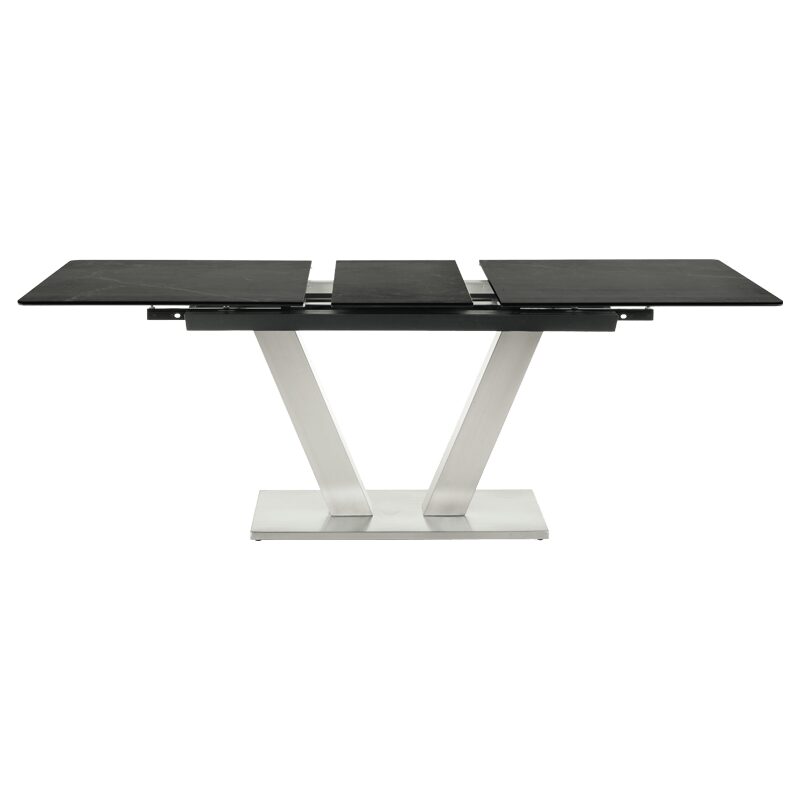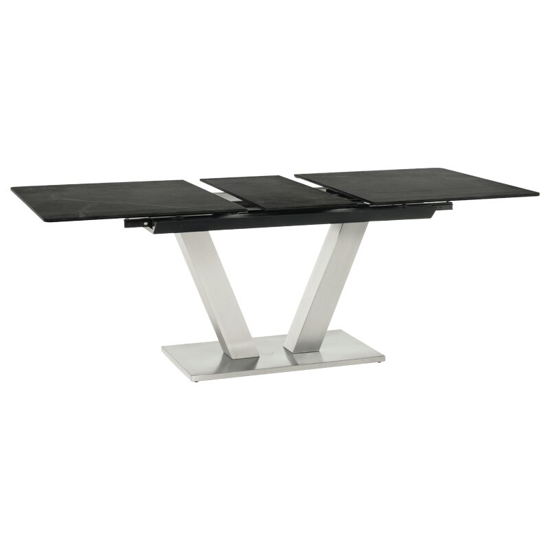 Разтегателната трапезна маса DUKLA е идеалното решение за всеки модерен дом, съчетавайки стил и функционалност. Изработена от висококачествени материали като закалено стъкло и керамика, с основа от неръждаема стомана, тя осигурява дълготрайност и елегантен блясък. Открийте повече за размерите и характеристиките в раздела “Допълнителна информация”.