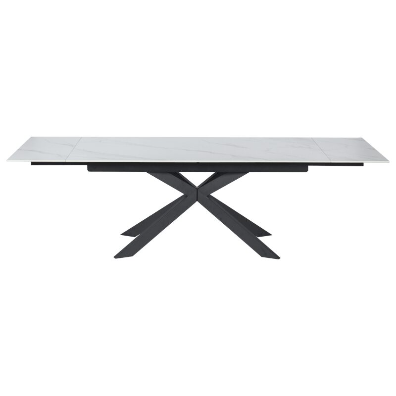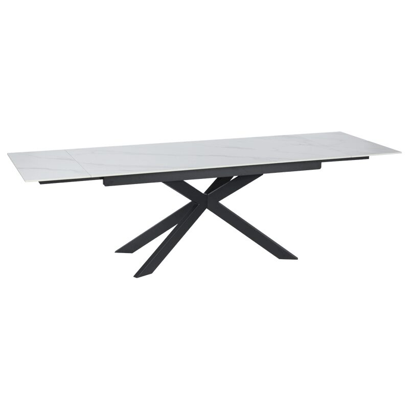 Трапезната маса ELK съчетава стил и функционалност с разтегателен керамичен плот, който се увеличава от 180 см до впечатляващите 260 см. Изработена от праховобоядисан метал, основата й осигурява изключителна стабилност и здравина. Тази модерна маса с уникален дизайн ще добави елегантност и практичност към всяка трапезария. Открийте повече за размерите и характеристиките в секцията “Допълнителна информация”.