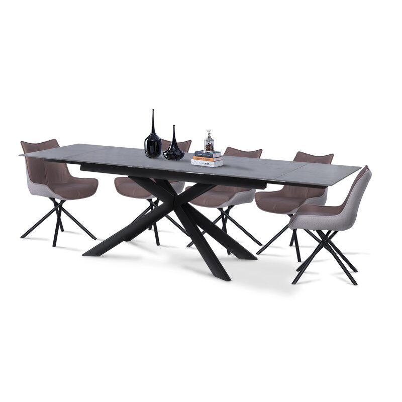 Трапезната маса ELK е идеалният избор за стил и функционалност в дома ви. Със своята разтегателна функция, тя се простира от 180 см до впечатляващите 260 см, осигурявайки достатъчно пространство за гости. Изработена от висококачествена керамика и праховобоядисан метал, тази маса предлага издръжливост и елегантен дизайн, който се вписва перфектно във всяка трапезария.