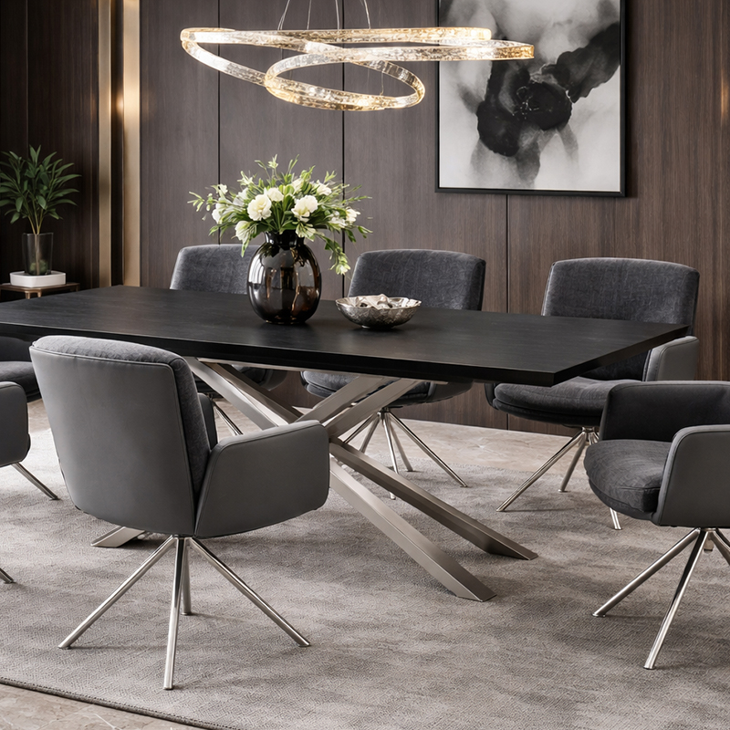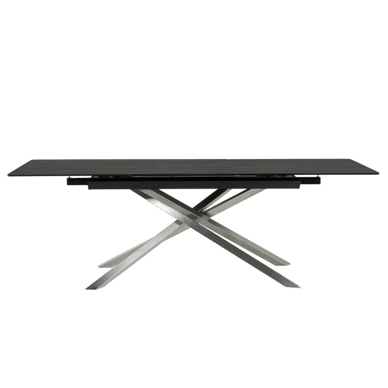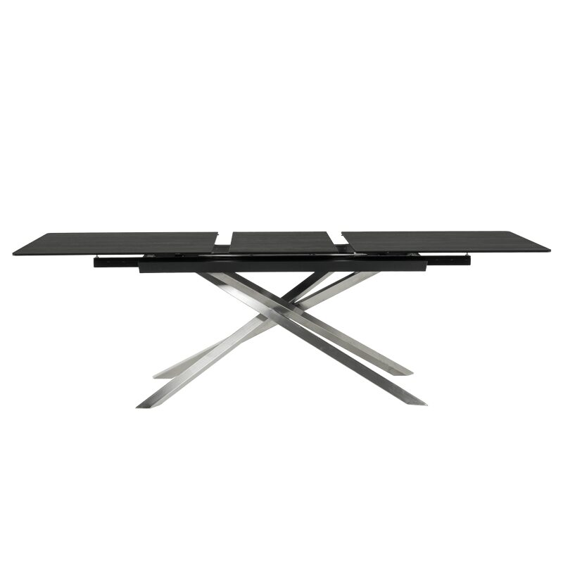 Трапезната маса KIKOL предлага изключителна функционалност и стил за вашия модерен дом. Със своя разтегателен плот от закалено стъкло и испанска керамика, тя съчетава елегантност и устойчивост. Основата от неръждаема стомана с инокс финиш гарантира стабилност и изисканост. Насладете се на просторни семейни вечери с KIKOL, идеалният акцент за всяка трапезария.