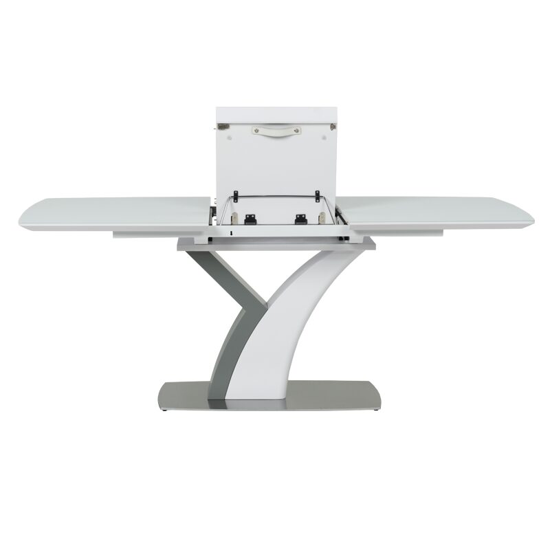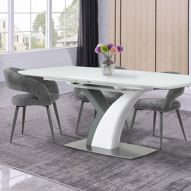 Разтегателната трапезна маса OMIS предлага идеалното решение за съвременния дом, като комбинира стил и функционалност. Стабилната основа от неръждаема стомана и плотът от висококачествен МДФ с матово закалено стъкло гарантират дълготрайност. Благодарение на лесния слайд механизъм, масата се разтяга от 140 см до 185 см, осигурявайки повече пространство за вашите гости.
