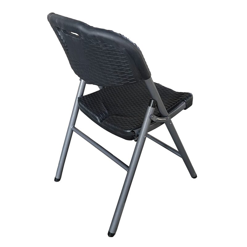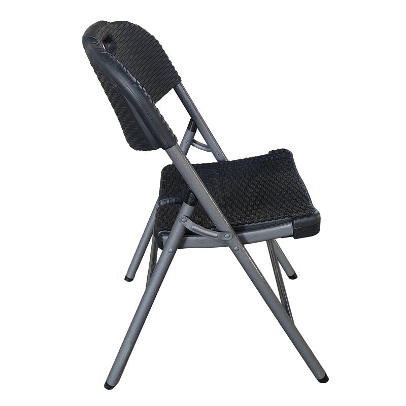 Сгъваемият кетъринг стол 9930 предлага удобство и стил с модерен релефен дизайн и здрава метална конструкция, гарантираща дълготрайна употреба. Изработен от висококачествен HDPE материал, имитиращ ратан, този стол е идеален за вътрешни и външни пространства. Лесното сгъване и вградената дръжка осигуряват мобилност. Разгледайте допълнителната информация за размерите и характеристиките.