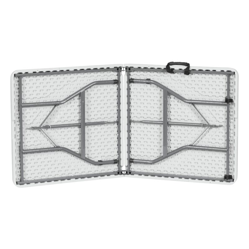 Търсите компактно решение за вашите къмпинг приключения или събития на открито? Сгъваемата маса 9941 е вашият идеален партньор! С дължина на плота от 153 см и стабилни метални крака, тя осигурява надеждност и удобство. Изработена от висококачествен HDPE, масата е лесна за пренасяне благодарение на удобната си дръжка. Перфектна за всеки, който цени практичността и качеството.