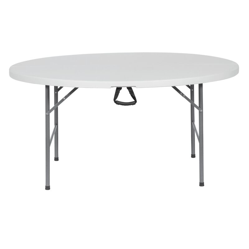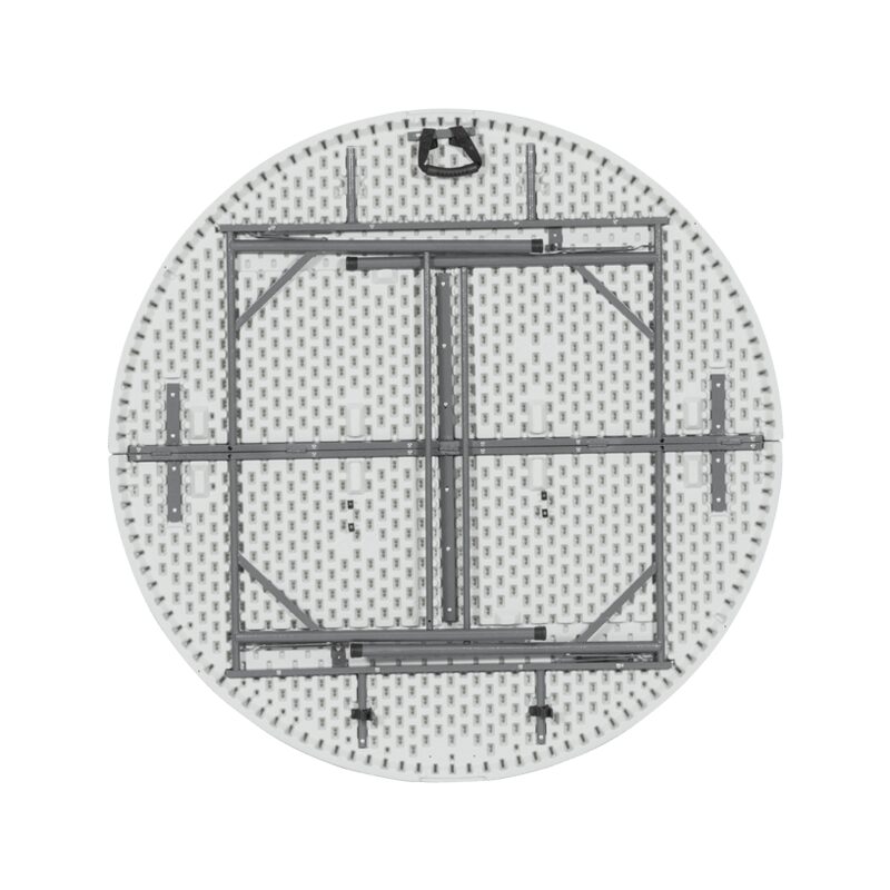 Сгъваемата маса 9946 е перфектното решение за вашите приключения на открито и събития. Със своя кръгъл плот от 154 см и стабилни метални крака, тя предлага изключителна устойчивост и удобство. Изработена от висококачествен HDPE материал, масата е лесна за пренасяне благодарение на удобната си дръжка. Идеална за къмпинг, пикници и събирания, тя ще бъде вашият надежден спътник.