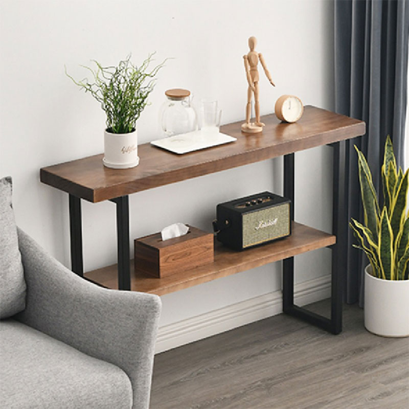 Конзола Nore от масивно дърво 35mm орех-черно 79x29x85cm