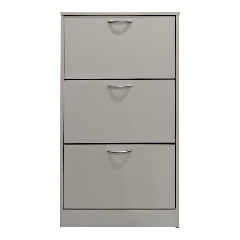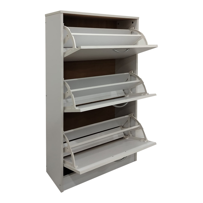 Разполага с три наклонени отделения, всяко проектирано да съхранява обувки, като ги предпазва от прах и ги поддържа подредени. Дискретните метални дръжки добавят модерен и минималистичен щрих. Здравата конструкция от устойчиви материали гарантира стабилност и дълготрайна употреба.