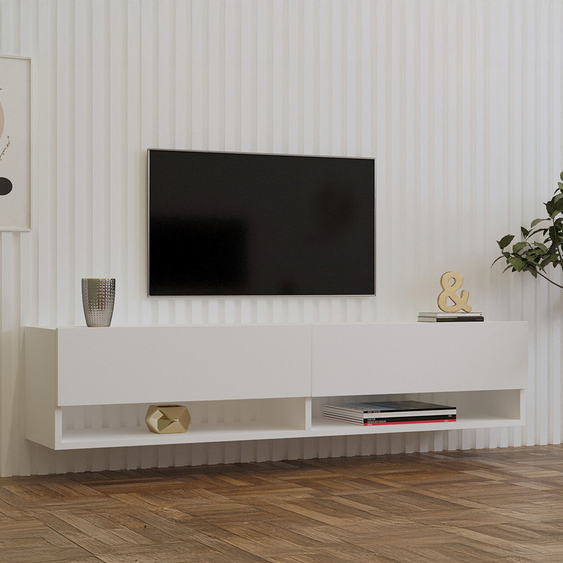 Шкаф за телевизор Melosa съчетава модерен дизайн и функционалност. Със своята чисто бяла отенък и изчистени линии, Melosa предлага елегантност и удобство, като е идеално за подреждане на пространството около телевизора ви.