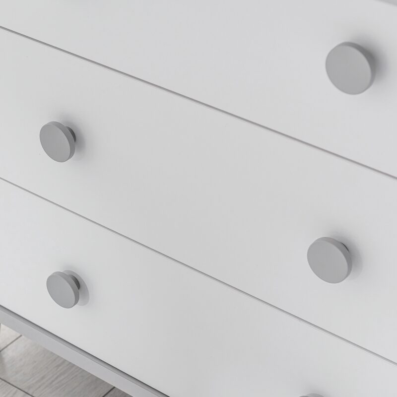 Скринът с три чекмеджета ADEN предлага изключителна функционалност и стил за вашия дом. Изработен от висококачествено ПДЧ, този скрин е създаден за издръжливост и естетика. Всяко чекмедже издържа до 25 кг и разполага с механизъм за плавно затваряне, осигурявайки тишина и безопасност. Устойчивите ABS дръжки и крака улесняват почистването и добавят модерен акцент. Разгледайте таблицата за пълни размери и характеристики.