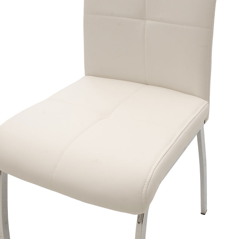 Модерен стол с правоъгълна облегалка и полирани крака от неръждаема стомана