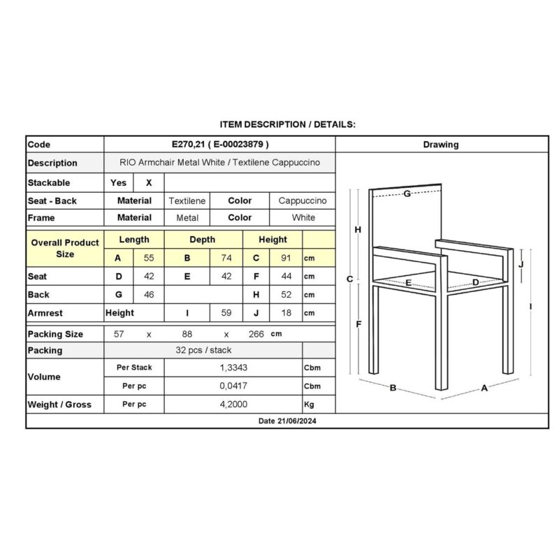 Метална рамка в бяло, седалка и облегалка от текстилен в цвят капучино