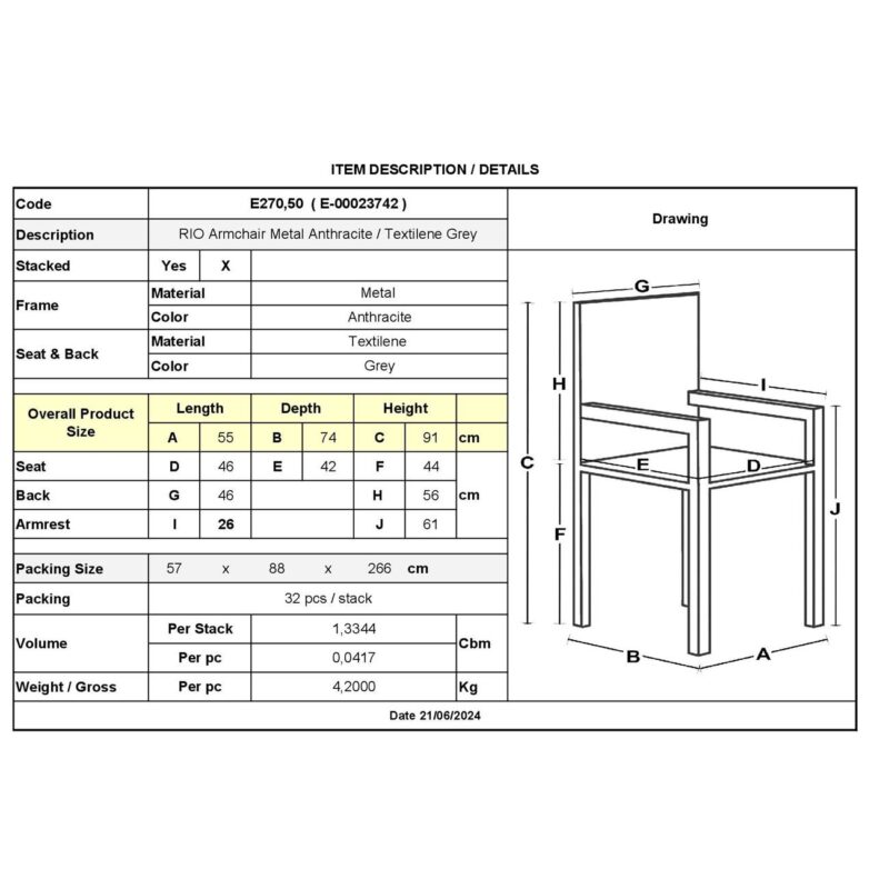 Стол, RIO, Сив, Метал, 55х74х91см.