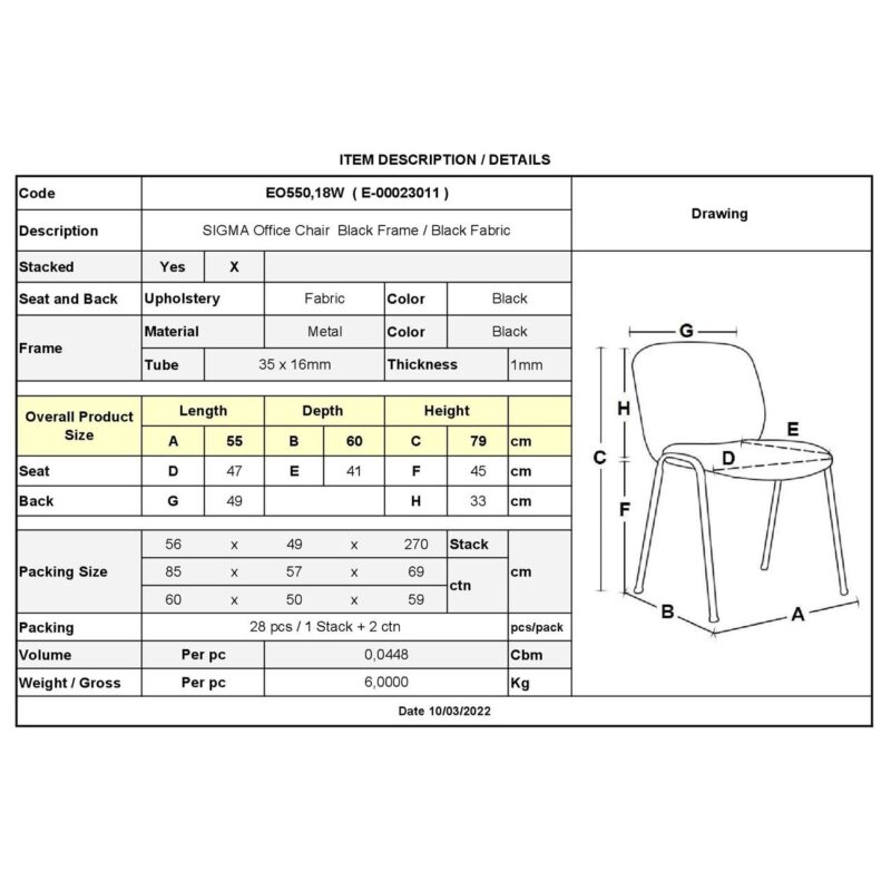 Стол, SIGMA, Черен, Текстил, 55х60х79см.