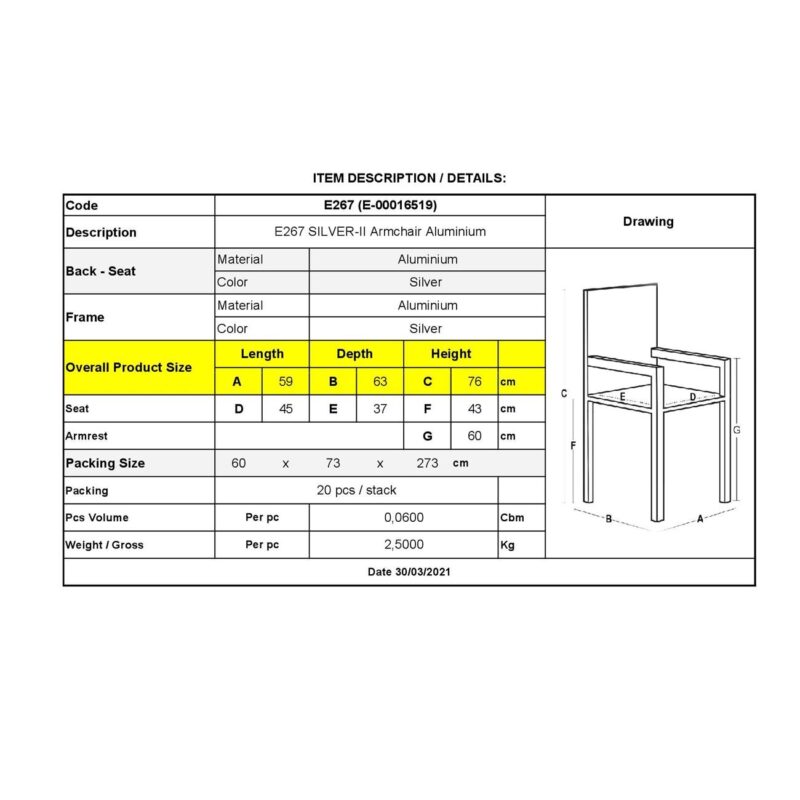 Стол, SILVER-II Alu Armchair, Сив, Алуминий, 59х63х76см.