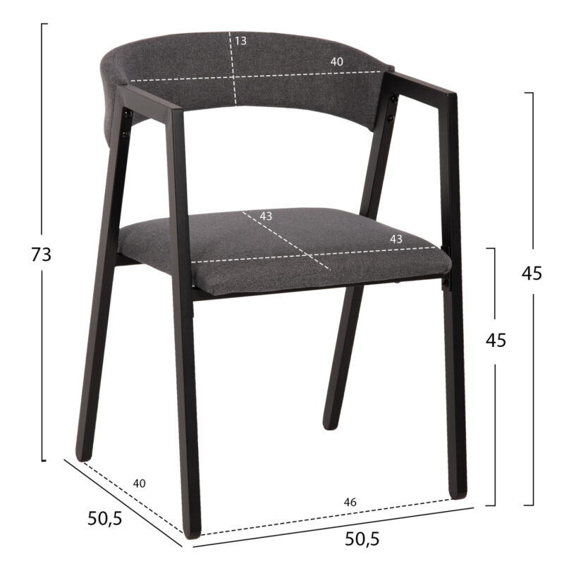 - Трапезарен комплект: Маса с MDF плот и метални крака, 4 стола с метални крака, тапицерия в СИВ плат
