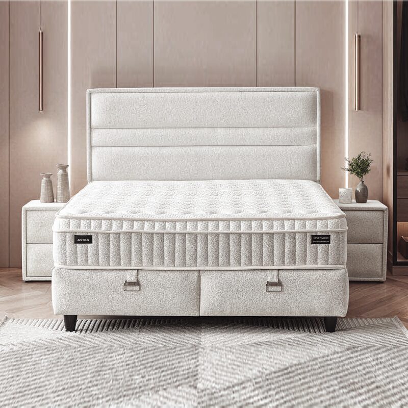 Тапицираната спалня с матрак ASTRA 140 x 200 предлага несравним комфорт и лукс, превръщайки спалнята Ви в истински оазис. Със своя боксспринг дизайн, тя осигурява оптимална височина и стабилност, докато високата табла с модерна капитонирана декорация добавя изтънчен стил. Здравата конструкция и висококачествената дамаска гарантират дълготрайност, а повдигащият механизъм разкрива обширно пространство за съхранение.
