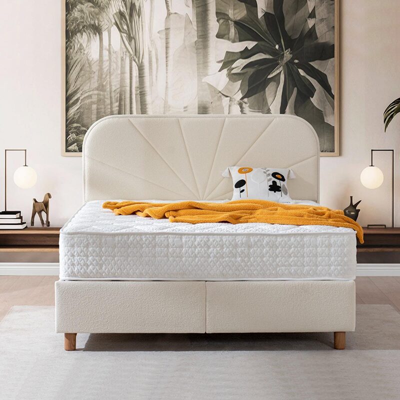 Насладете се на луксозния комфорт и практичността на тапицираната спалня DELUX PREMIUM. С дебелина на матрака от 27 см, сънят ви ще бъде безупречен с идеалния баланс между удобство и стабилност. Елегантната текстилна дамаска на таблата добавя уют, а механизмът с четири амортисьора осигурява лесен достъп до просторен вътрешен склад за вашите вещи. Открийте повече в раздел “Допълнителна информация”.