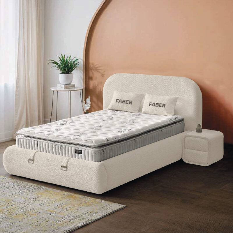 Тапицираната спалня с матрак FABER предлага ненадминат комфорт и стилен дизайн за вашата спалня. Изработена от висококачествени материали за дълготрайност и удобство, тази спалня включва умерено мек матрак за оптимална опора. С подсилена подматрачна рамка и ракла за съхранение, тя е идеалното решение за практичност и естетика. Открийте повече за размерите и характеристиките в секцията “Допълнителна информация”.