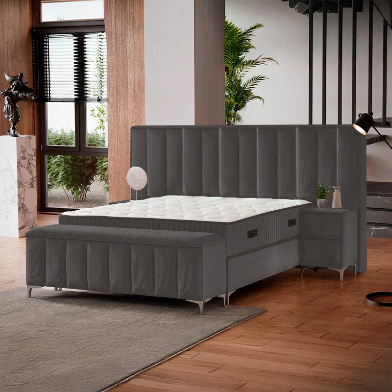 Тапицирана спалня с матрак MOONLIGHT 180 х 200 – сив 190