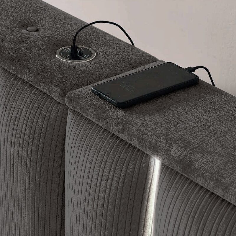 Тапицираната спалня с матрак MOONLIGHT предоставя съвременен комфорт и естетика с изтънчен бежов цвят. Високата табла с вертикален релеф и LED светлини създават уютна атмосфера, а USB портът добавя удобство. Двулицевият матрак с покет пружини и еластична пяна гарантира отлична опора и комфорт. Функционалната ракла предлага практично съхранение за вашите вещи.
