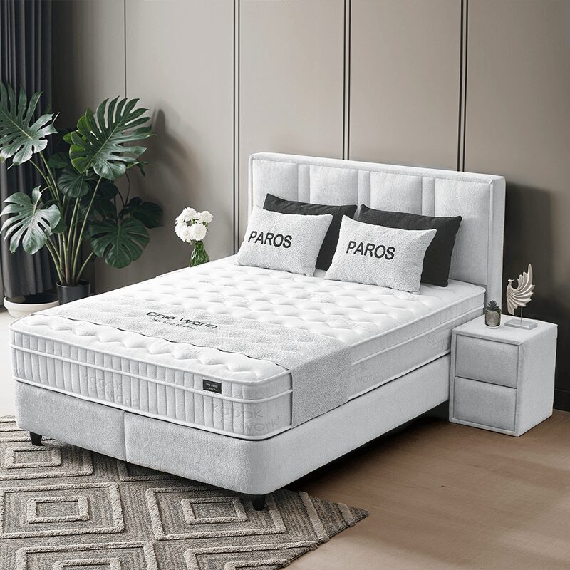Открийте съвършената комбинация от комфорт и функционалност с тапицираната спалня PAROS 160×200. Комплектът включва висококачествен матрак с антибактериално покритие, подматрачна рамка с лесен механизъм за повдигане и практична ракла за съхранение. Добавете стил с нощни шкафчета от същата серия. Насладете се на безупречно качество и съвременен дизайн в едно.