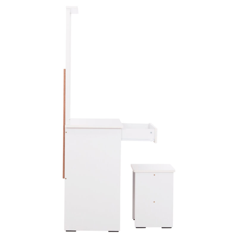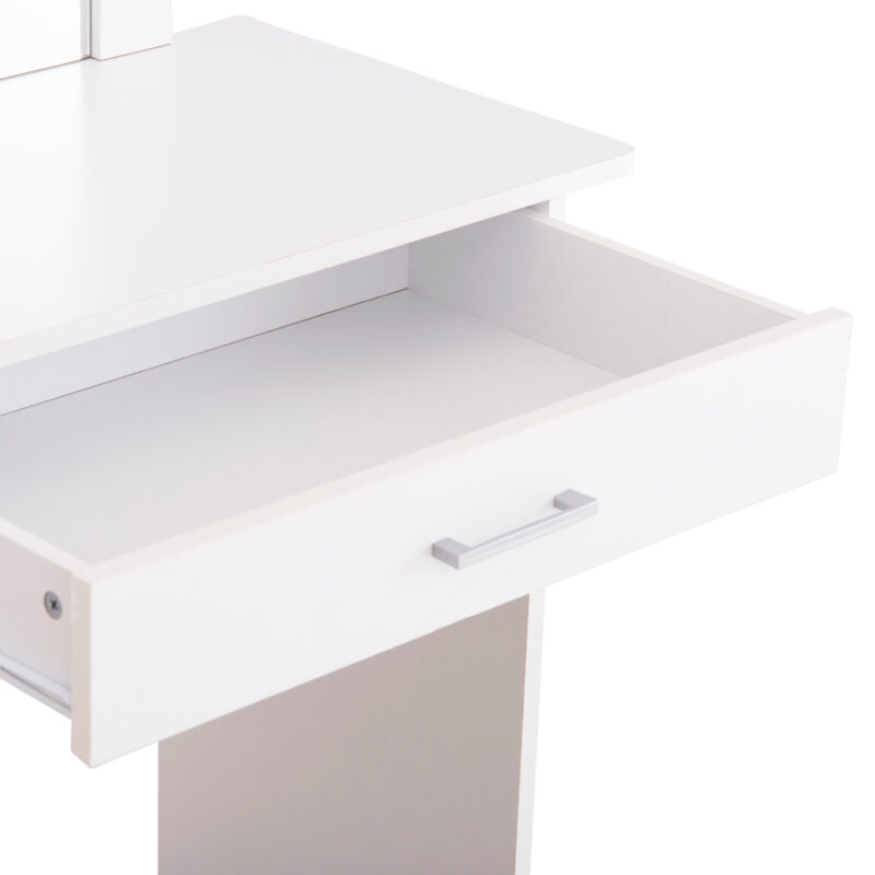 Тоалетка CRYSTEL с огледало и табуретка – БЯЛА