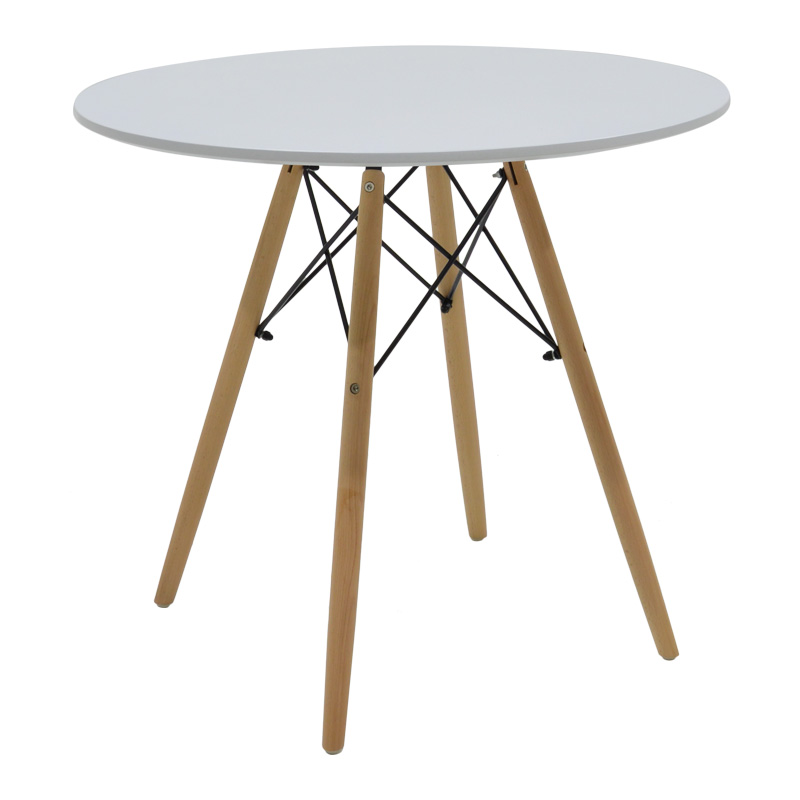 Плот от висококачествен MDF (16mm) в бяло, с крака от масивно дърво и метални скоби
