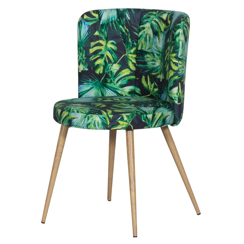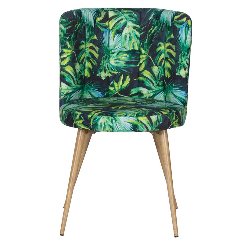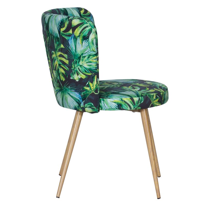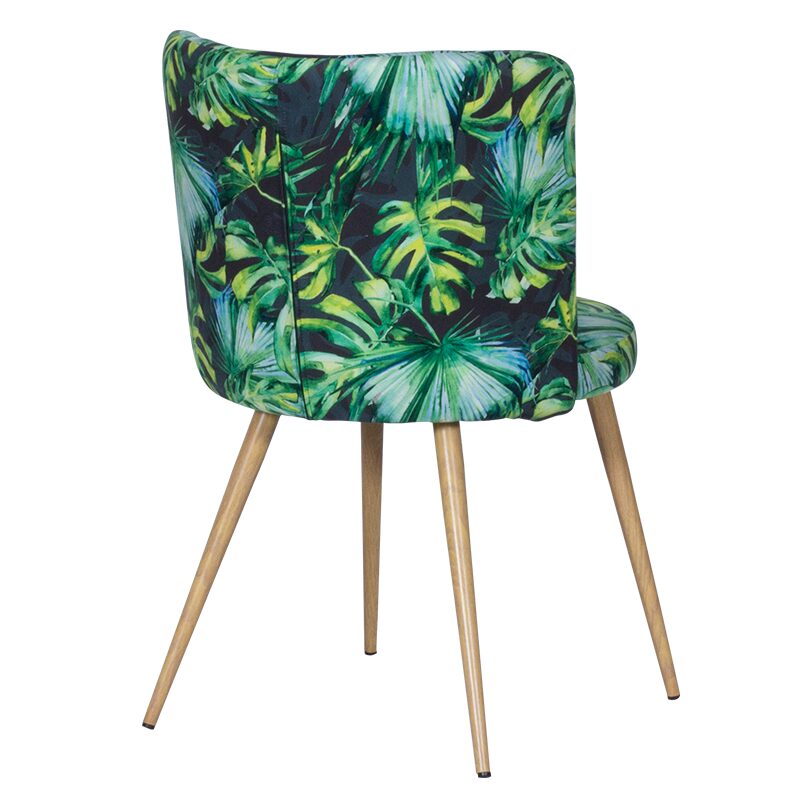 Трапезният стол 525 е идеалното допълнение за вашия модерен дом, придавайки стил и екзотичен акцент на всяка трапезария. Изработен от висококачествена дамаска с цветни мотиви и здрави метални крака с дървесен ефект, този стол комбинира естетика и издръжливост. Разгледайте таблицата в “Допълнителна информация” за подробности относно размерите и характеристиките.