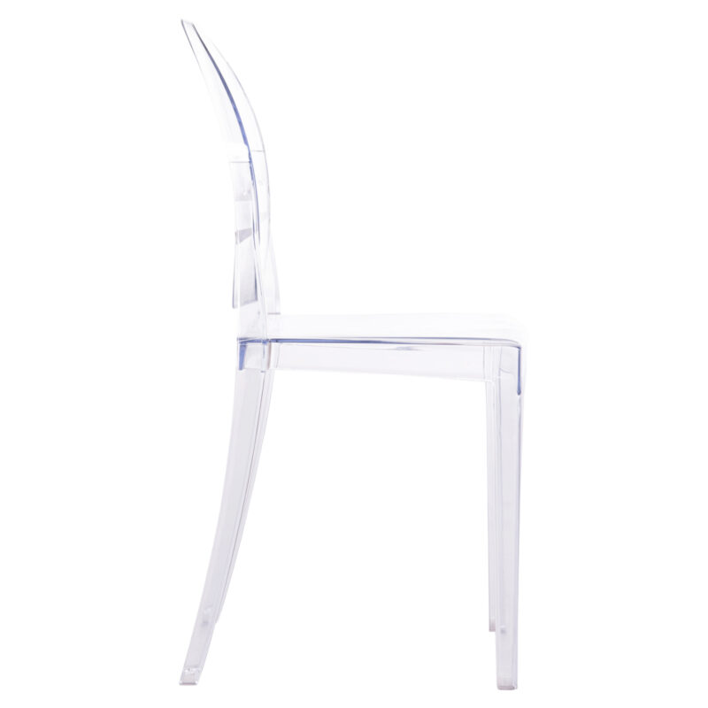 Трапезният стол ARAMIS е модерен с безупречен дизайн и със сигурност привлича вниманието. Целият стол е изработен от едно цяло прозрачен акрилен материал с красиво заоблена облегалка и извита седалка. Столът е подреждаем (stackable), което го прави идеален избор и за професионална употреба, като заведения за хранене, кетъринг и др.