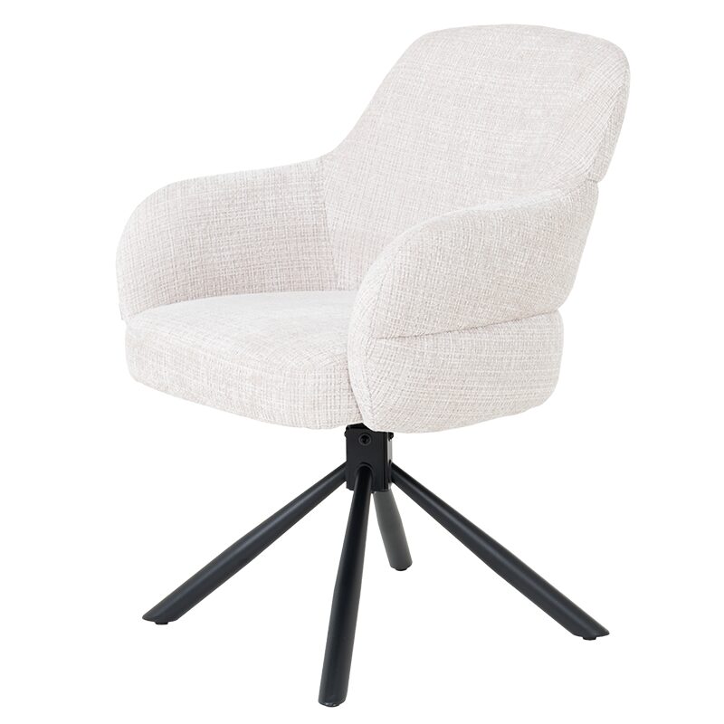 Открийте изключителен комфорт и стил с трапезния стол BANGOR, който предлага обгръщаща форма и мека дамаска за приятно усещане при сядане. Седалката с покет пружини и подлакътниците осигуряват максимално удобство, докато функцията за въртене на 180° и стабилната метална основа гарантират практичност и дълготрайност. Насладете се на елегантен дизайн и висококачествени материали за вашия дом.