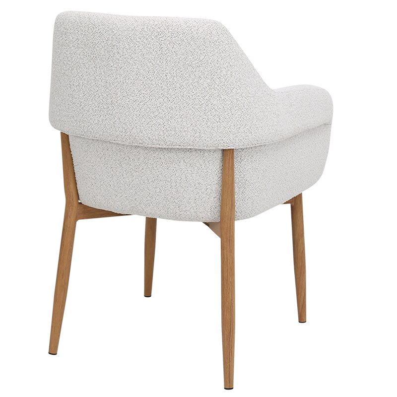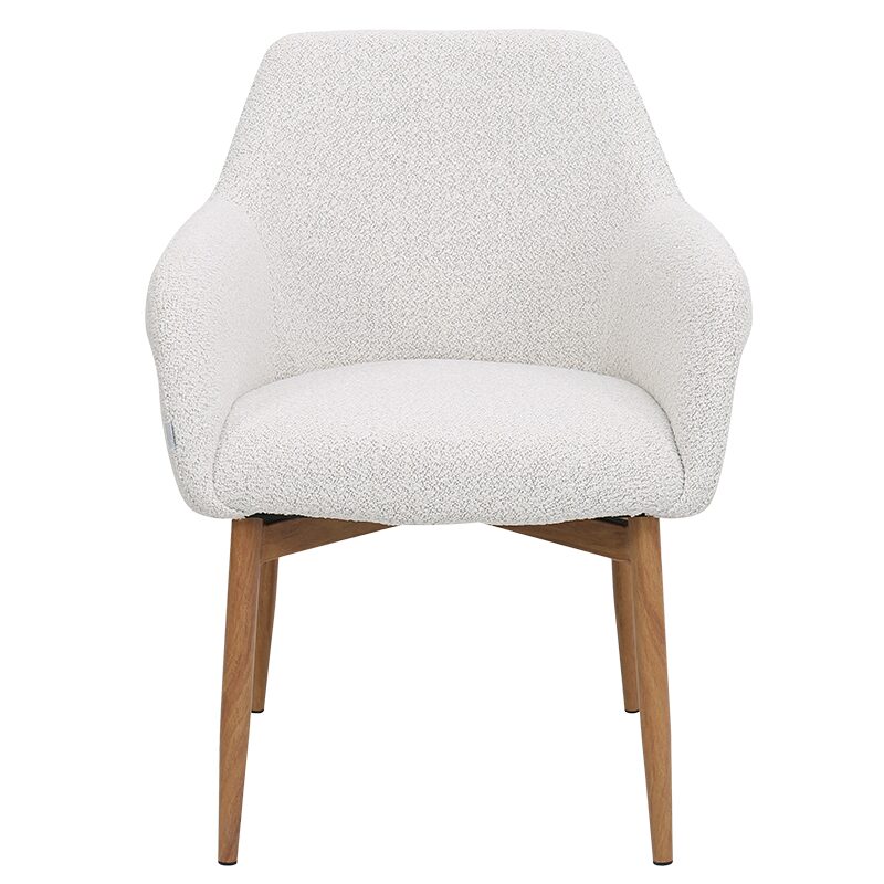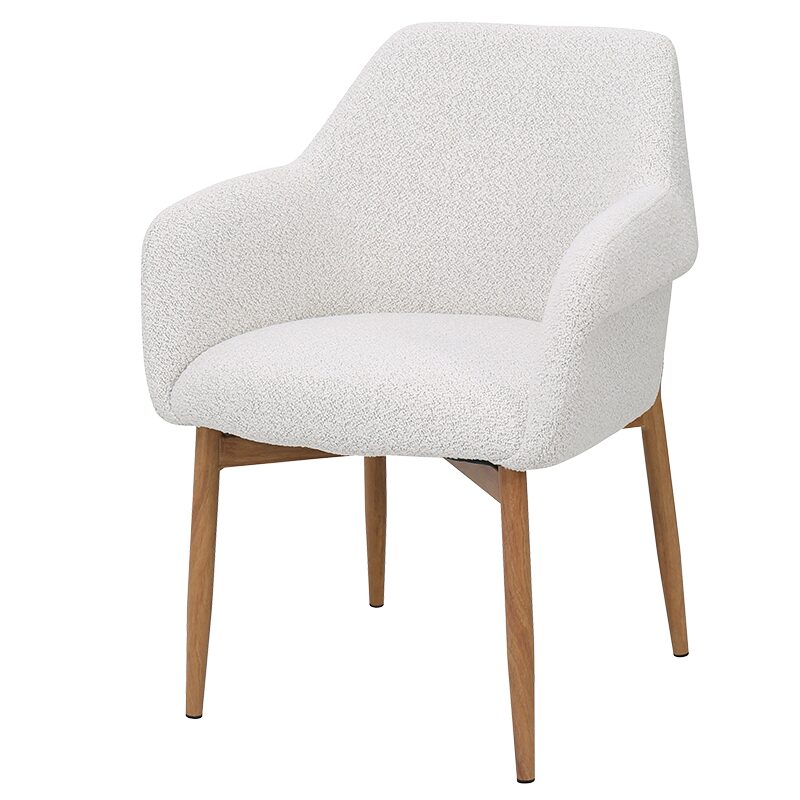Трапезният стол BOLO предлага изключителен комфорт и стил с модерния си дизайн и удобни подлакътници. Тапициран с мека дамаска, той създава уютна атмосфера, а здравата основа от праховобоядисан метал с дървесен ефект осигурява стабилност и елегантност. Идеален за трапезария или всекидневна, този стол съчетава високо качество и изисканост.