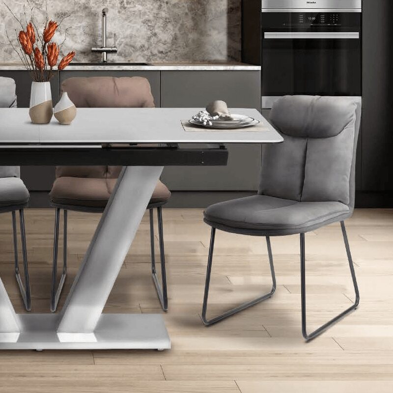 Подарете на трапезарията си комфорт и стил с модерния трапезен стол BRENT. Със своя уникален дизайн и висококачествени материали като дамаска и еко кожа, този стол предлага издръжливост и елегантност. Праховобоядисаният метал гарантира стабилност и дълготрайност. Разгледайте пълните размери и характеристики в раздел “Допълнителна информация”.