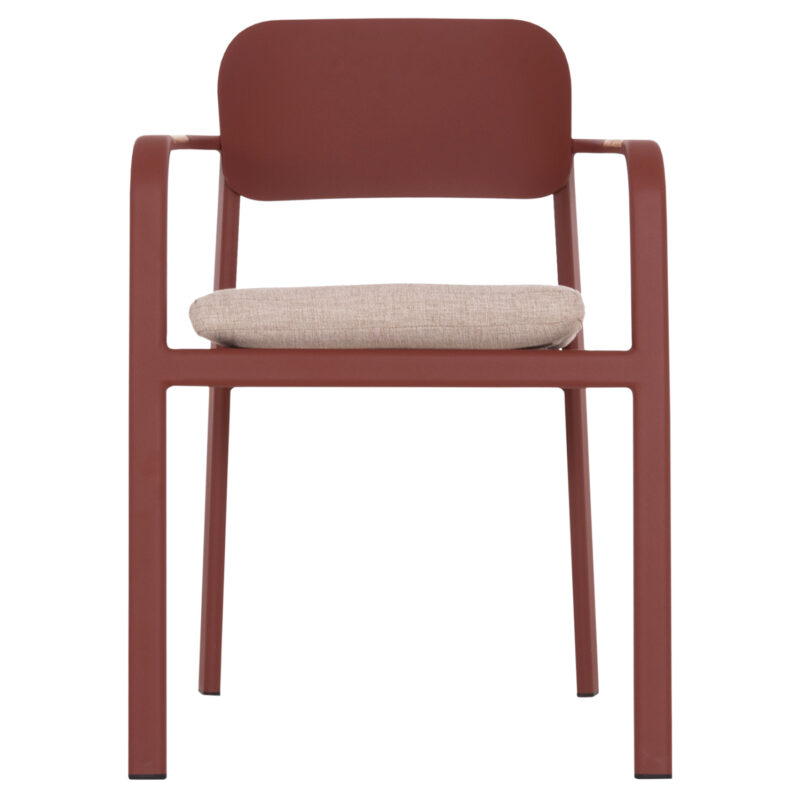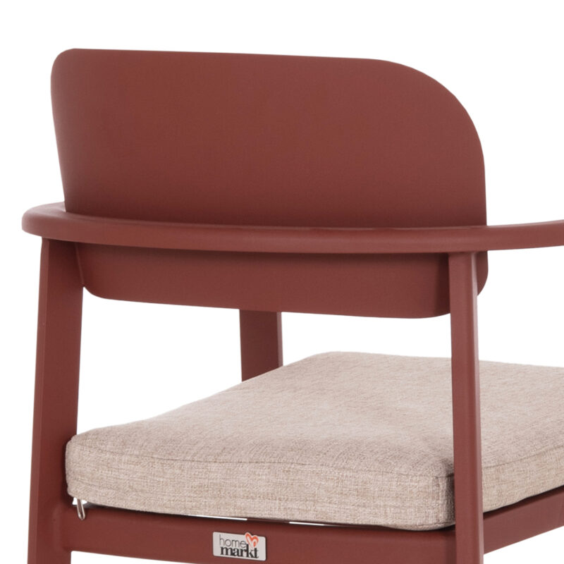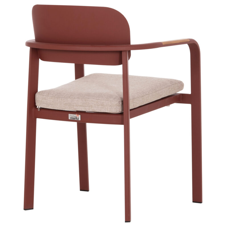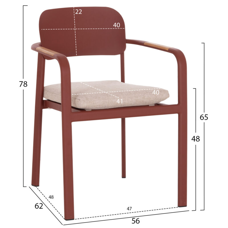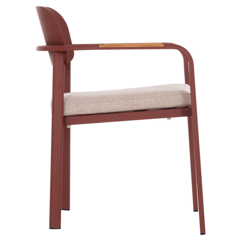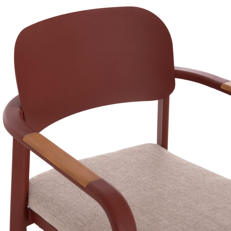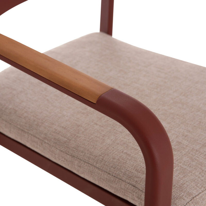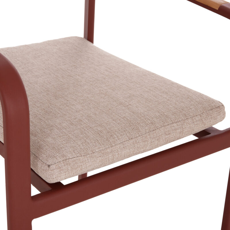 Червена алуминиева рамка, облегалка от алуминий, възглавница от OLEFIN плат и 25D пяна, декорации от тиково дърво