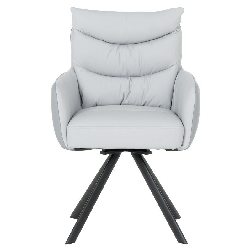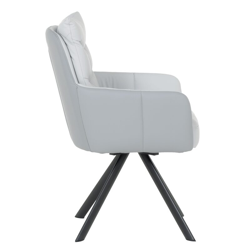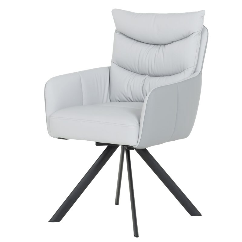 Насладете се на изключителен комфорт и стил с трапезния стол LURGAN. Със своите висококачествени силиконова кожа и праховобоядисан метален корпус, този стол предлага лукс и издръжливост. Широката седалка и облегалка, заедно с допълнителните възглавници, гарантират удобство, докато 180-градусовото завъртане осигурява свобода на движение. Идеален избор за модерния дом, LURGAN е съвършеният акцент за вашата трапезария.