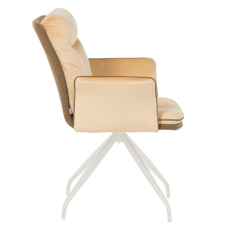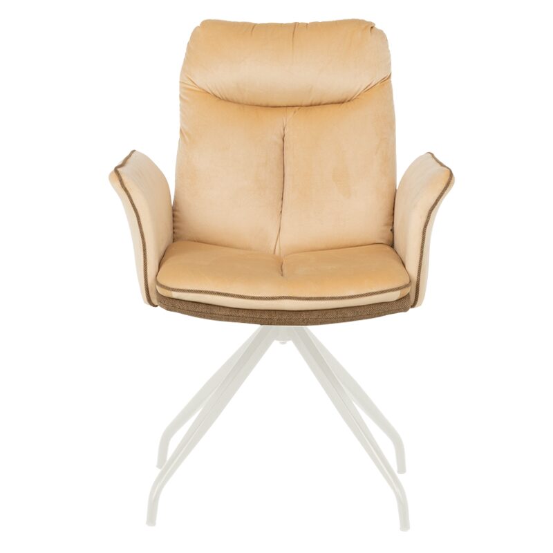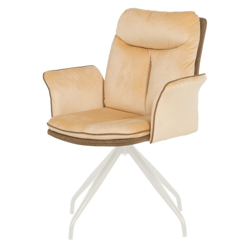 Трапезният стол MARLOW 1 предлага изключителен комфорт и стил за вашия дом. Със своите широки седалка и облегалка, тапицирани в мека дамаска, и допълнителни възглавници, този стол е идеален за дълги вечери с приятели. Металната основа с кремаво покритие осигурява стабилност и иновативно 360-градусово въртене. Изберете MARLOW 1 за модерен и удобен интериор.