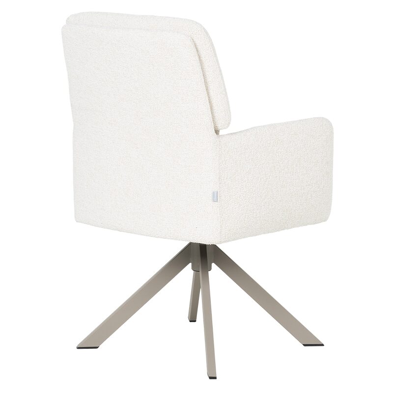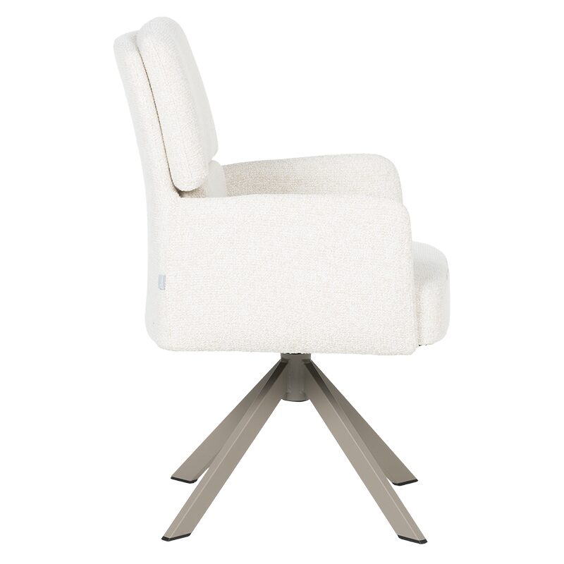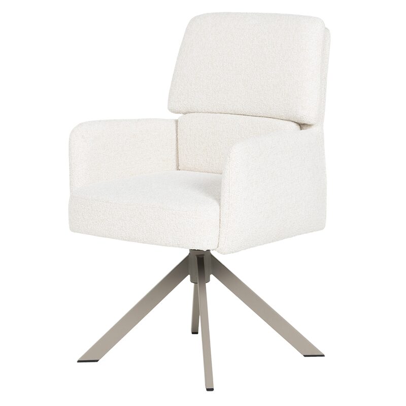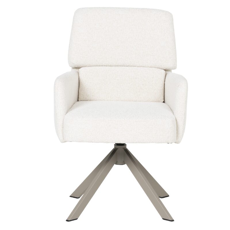 Трапезният стол NARVA предлага ненадминат комфорт и стил за вашата съвременна трапезария. Със седалка от висококачествена дамаска и покет пружини, този стол осигурява уют и релакс. Металната основа с перлен блясък и функцията за въртене на 360° добавят практичност и елегантност. Издръжлив до 120 кг, NARVA е идеалният избор за качество и дълготрайност.