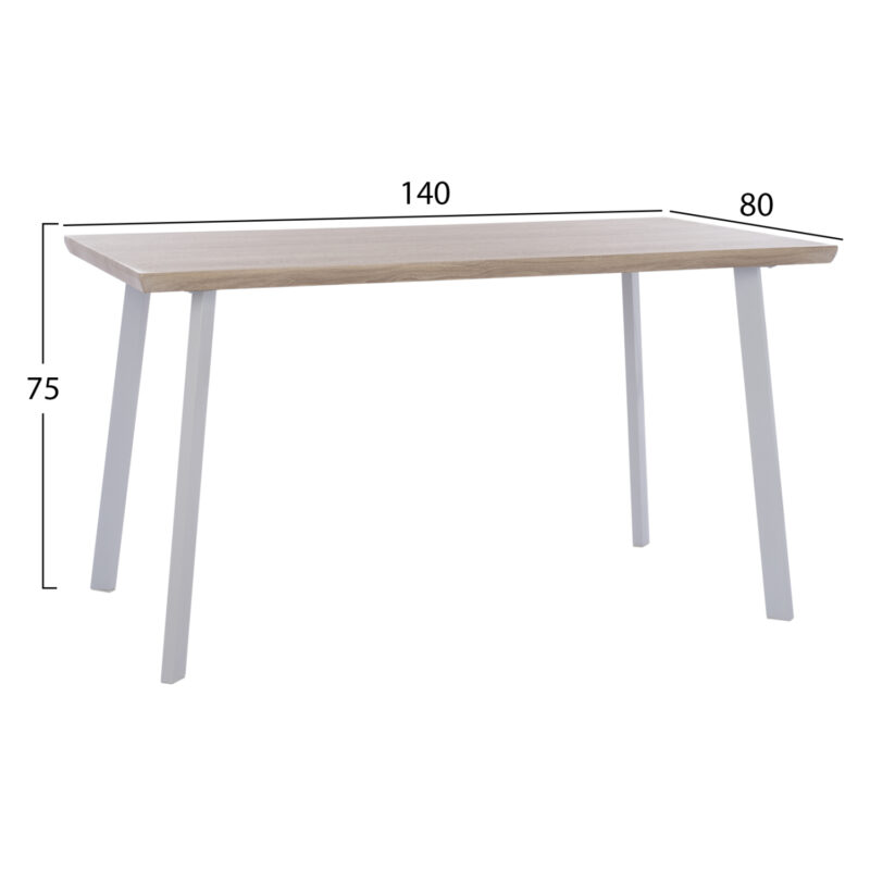 Правоъгълна маса с метални крака в БЯЛ цвят и плот от MDF в цвят СОНАМА