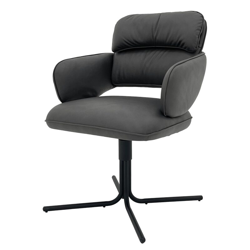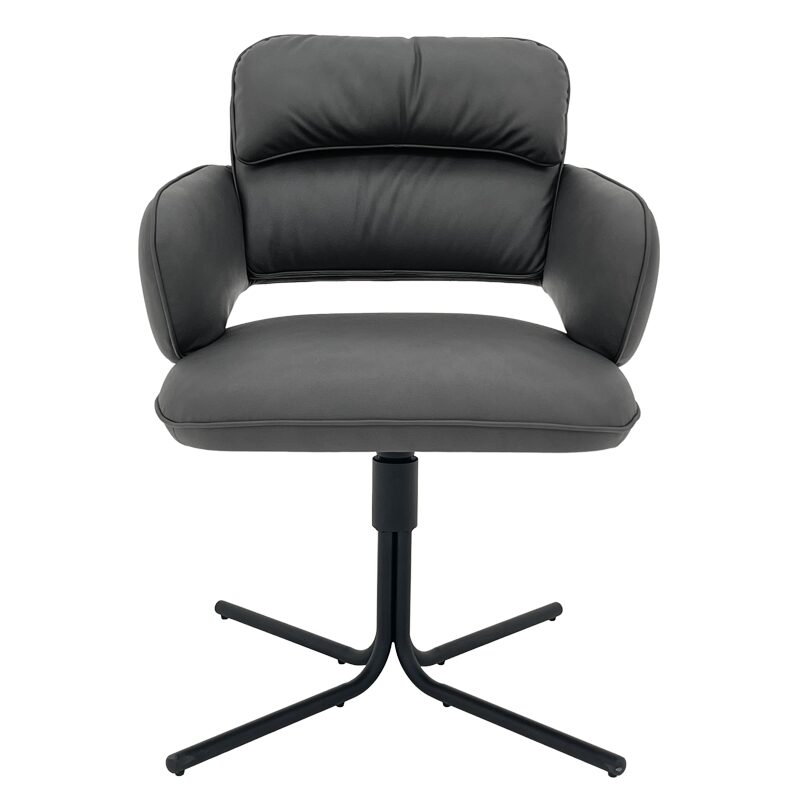 Подарете си изключителен комфорт и модерен стил с трапезния стол RAKVERE. Меката дамаска и вградените покет пружини гарантират приятно усещане при сядане, докато люлеещата функция и 360-градусовото въртене добавят свобода на движение. Черният матов метален крак завършва визията с елегантност и съвременна естетика. Открийте повече за размерите и характеристиките в таба „Допълнителна информация“.