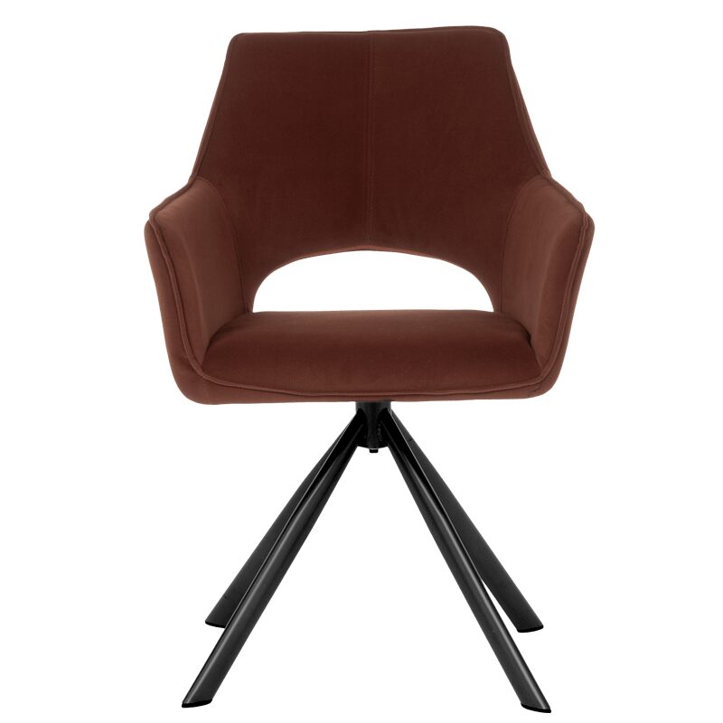Насладете се на изключителен комфорт с трапезния стол READING, който предлага удобни подлакътници и широка облегалка, обвити в луксозна дамаска. Стабилната основа от праховобоядисан метал осигурява издръжливост и стил. Въртящата се седалка на 360° е практична добавка за всяка трапезария. Открийте повече за размерите и характеристиките в секцията “Допълнителна информация”.