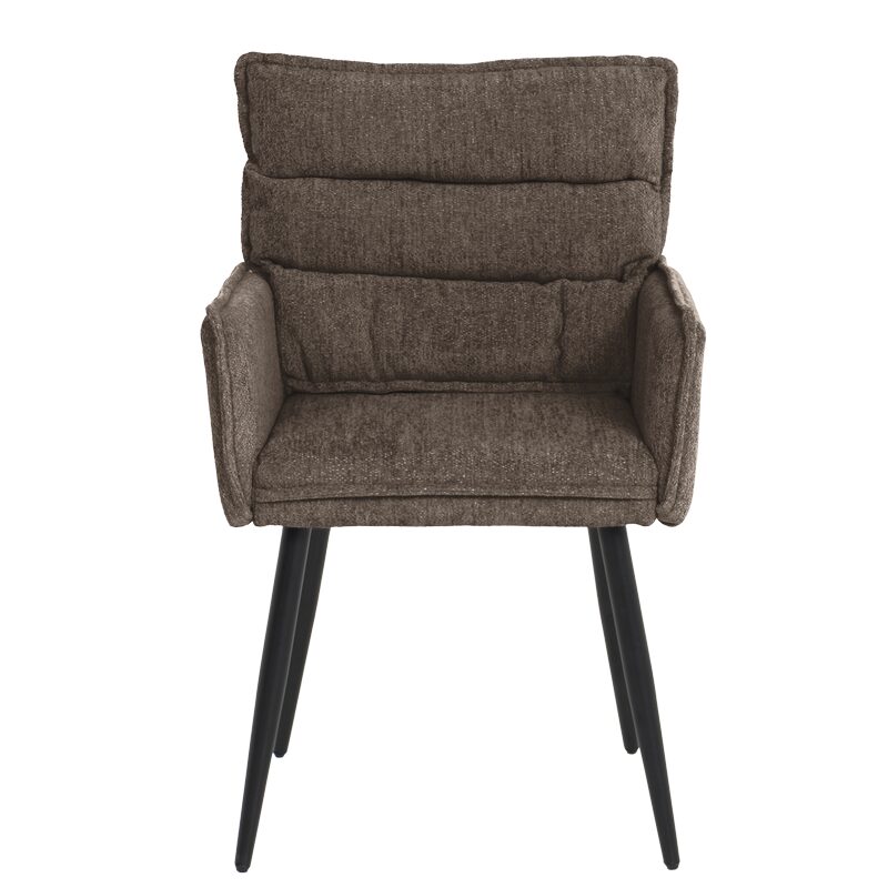Трапезният стол IKSAN с подлакътници предлага изключителен комфорт и стил, превръщайки се в перфектния акцент за вашия модерен дом. Изработен от мека дамаска и полиуретанова пяна, столът осигурява уютно седене, докато черните праховобоядисани метални крака придават стабилност и елегантност. Комбинирайте с останалите мебели от серията IKSAN за единна и стилна визия.