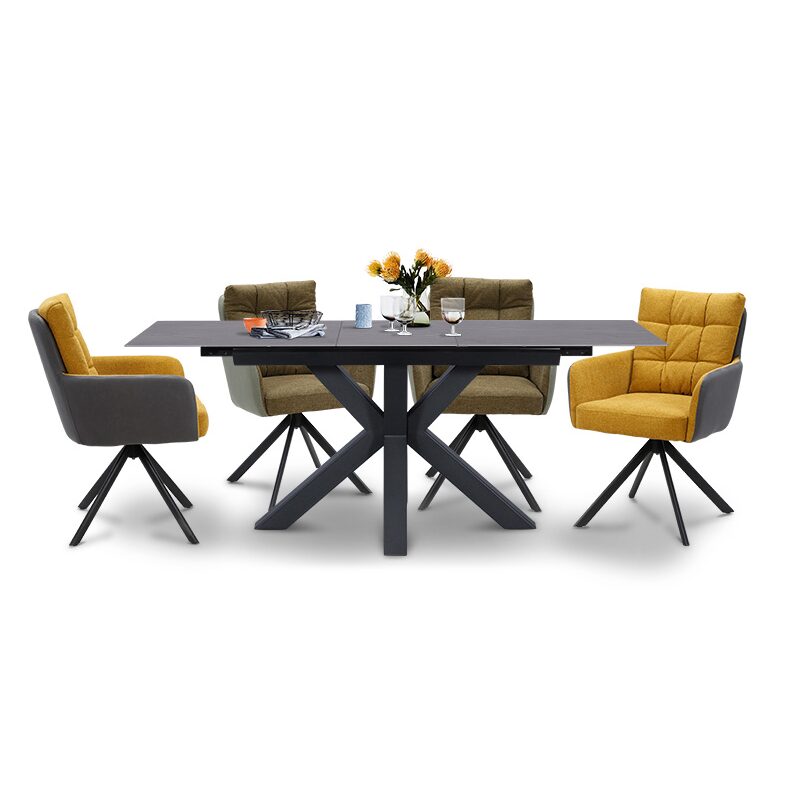 SEFTON е вашият идеален избор за трапезен стол, който съчетава модерна елегантност и комфорт с въртяща се на 360° седалка. Изработен от висококачествена дамаска и здрав праховобоядисан метал, този стол е издръжлив и стилен. Открийте повече за размерите и характеристиките в раздела “Допълнителна информация”. Насладете се на стил и функционалност в трапезарията си с SEFTON.