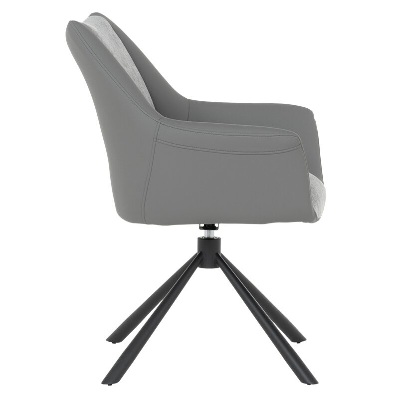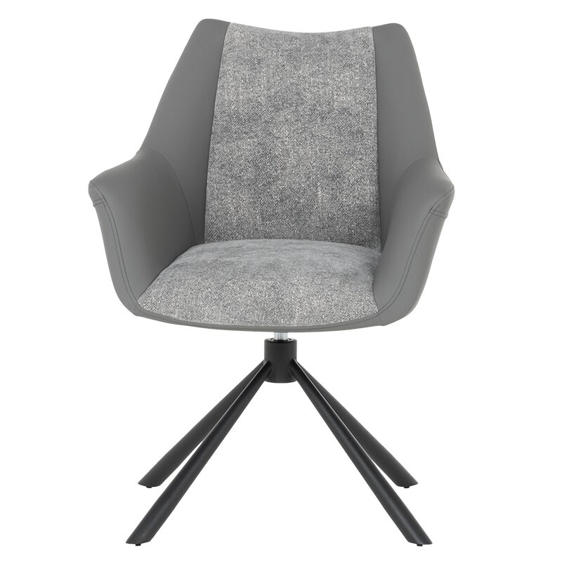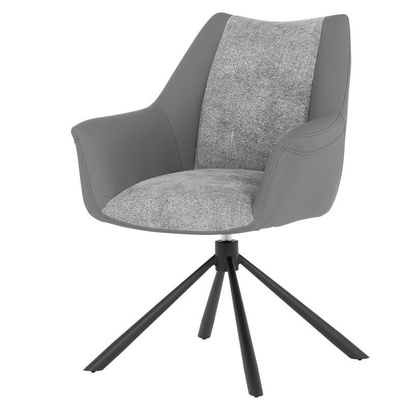 Трапезният стол TEMPE е идеалният избор за комфорт и стил в трапезарията ви. Със своите удобни подлакътници и широка седалка, изработени от висококачествена дамаска и силиконова кожа, този стол предлага изключителен комфорт. Здравите метални крака, праховобоядисани в черно, осигуряват стабилност и издръжливост. Въртящата се седалка на 360° добавя функционалност към елегантния дизайн.