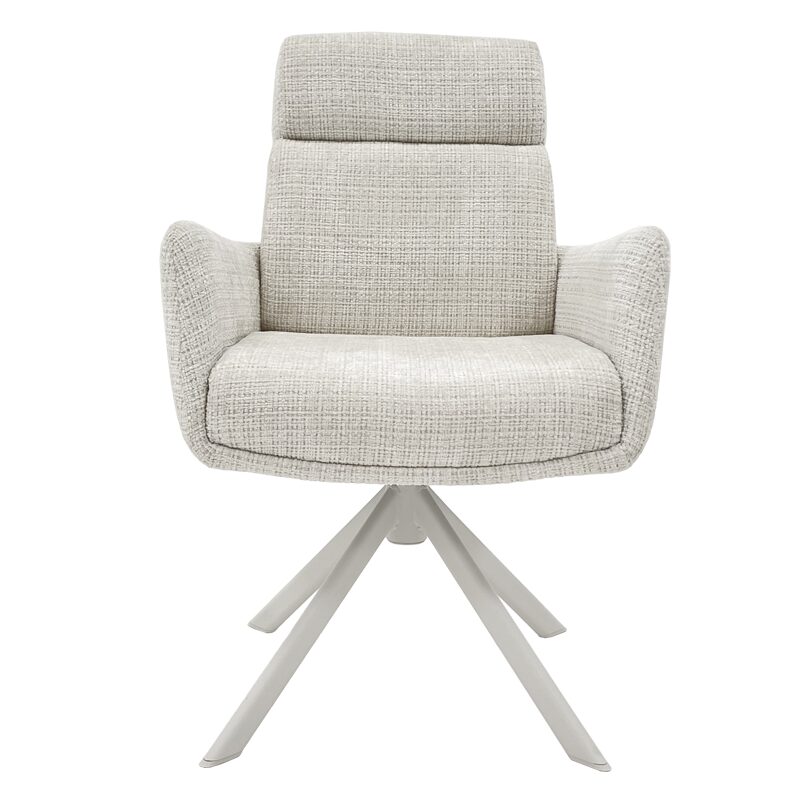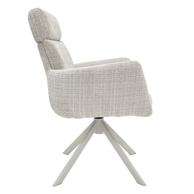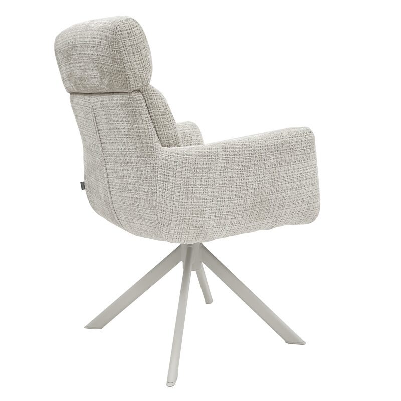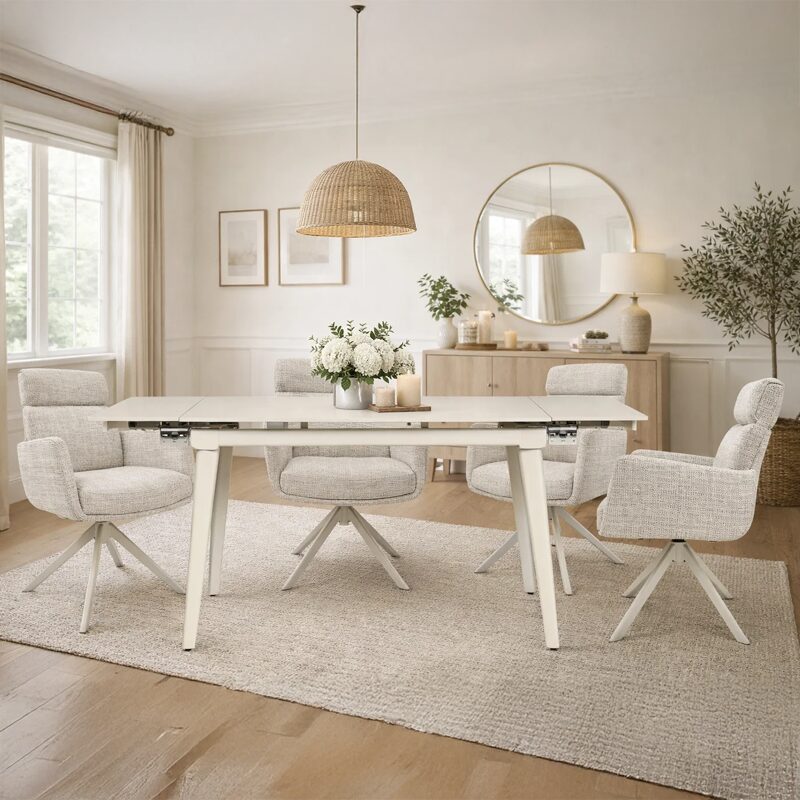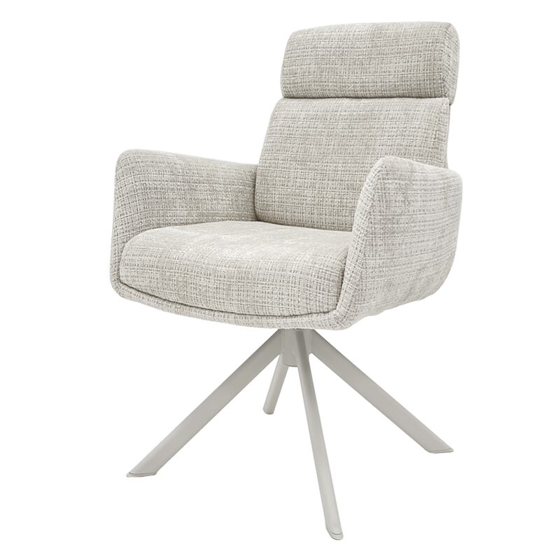 Трапезният стол TORVA 6 съчетава лукс и комфорт с високата си облегалка и ергономичен дизайн, идеален за дълги часове на седене. Издръжливата дамаска и покет пружините осигуряват мекота, докато праховобоядисаната метална основа позволява 360-градусово въртене. С капацитет до 120 кг и подлакътници, този стол е перфектен за модерни трапезарии и офиси.