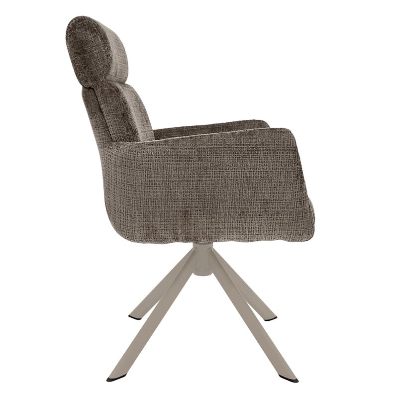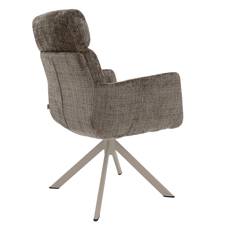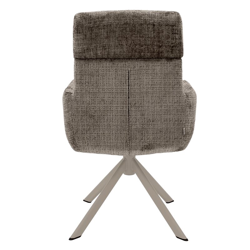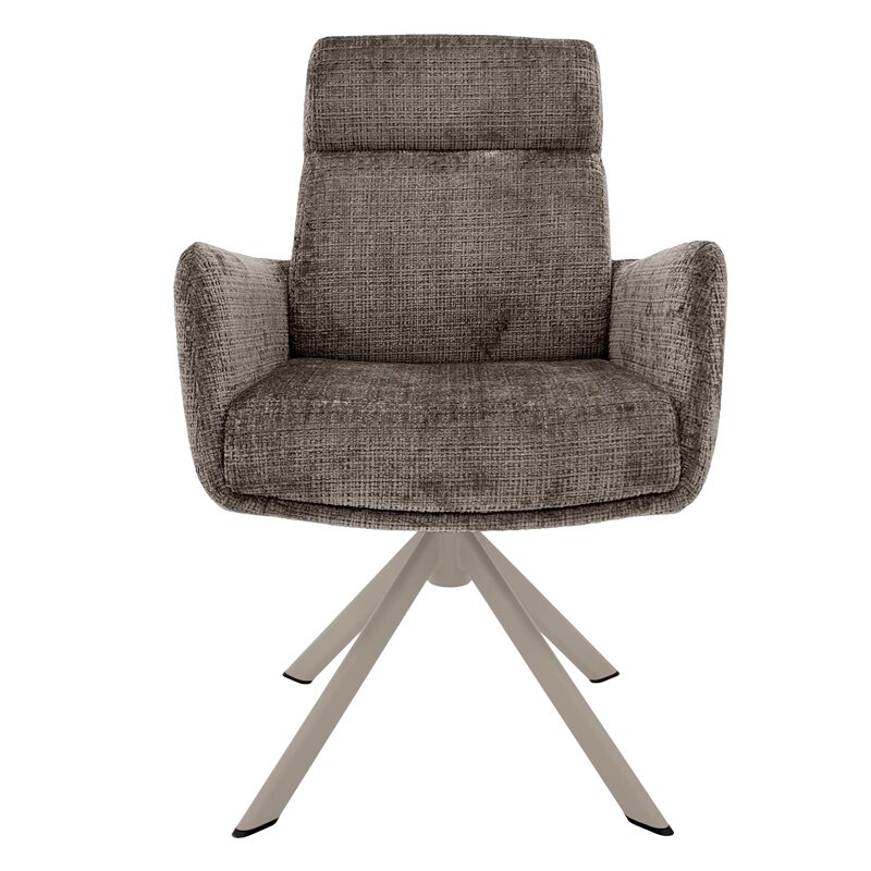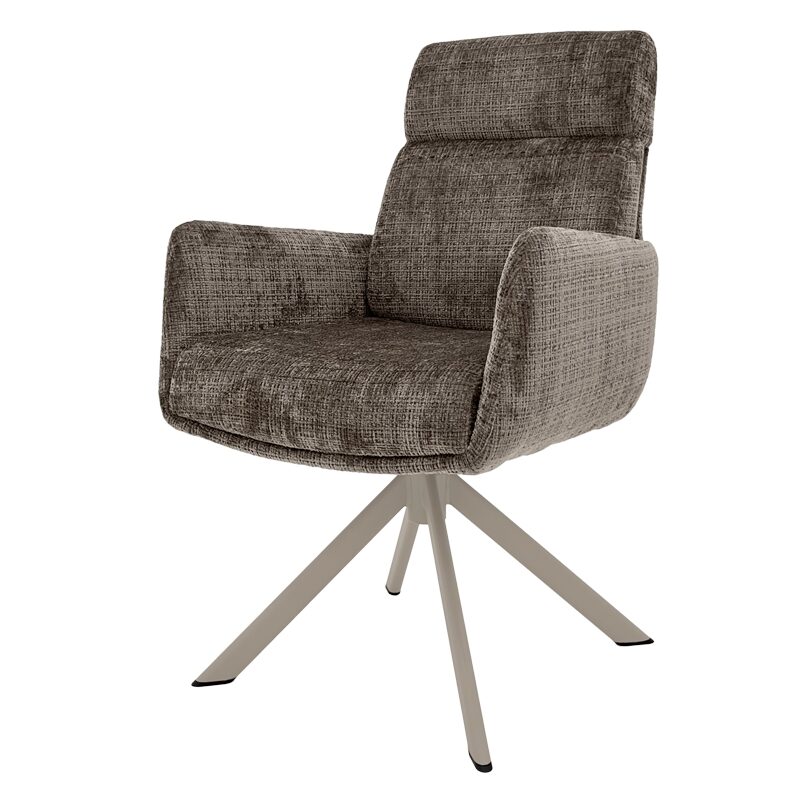 Трапезният стол TORVA предлага несравним комфорт с елегантен дизайн и удобни подлакътници. Изработен от висококачествена дамаска и праховобоядисан метал, този стол издържа до 120 кг и включва покет пружини и функция за люлеене. Със здравата си основа, столът осигурява 360° въртене и автоматично връщане, като е идеален за всяка модерна трапезария.