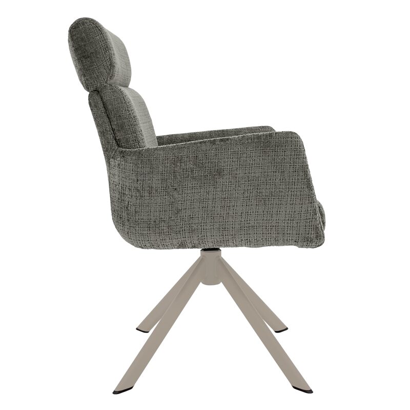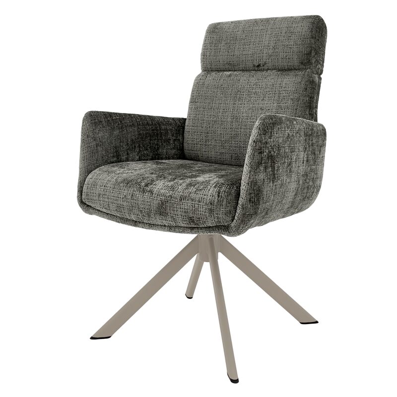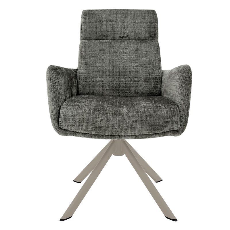 Насладете се на съвременен комфорт с трапезния стол TORVA, който комбинира елегантен дизайн и издръжлива дамаска. С подсилена седалка и функция за люлеене, този стол осигурява изключителна стабилност и удобство. Здравата метална основа позволява 360-градусово въртене и автоматично връщане, което го прави идеален за всяка модерна трапезария. Подходящ за натоварване до 120 кг.