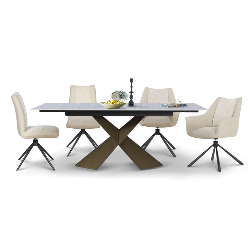 Насладете се на комфорт и стил с трапезния стол TULSA, който предлага изключително удобство благодарение на висококачествената дамаска и силиконова кожа. Със своя модерен дизайн и стабилни праховобоядисани метални крака, този стол е идеален за вашата трапезария или заведение. Функцията за 360-градусово въртене добавя практичност и елегантност към всеки интериор. Разгледайте допълнителната информация за размерите и характеристиките.