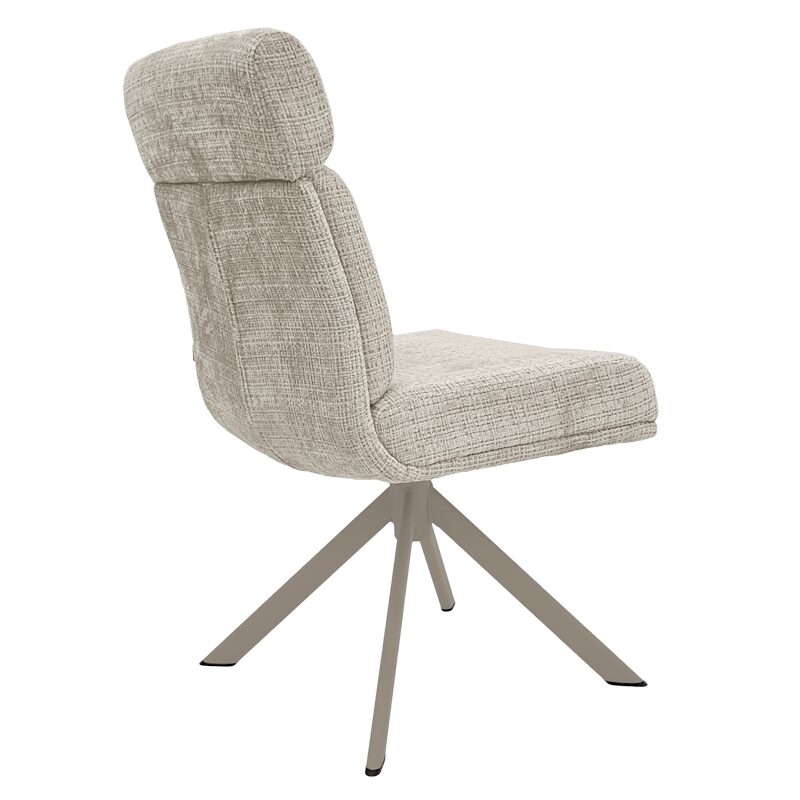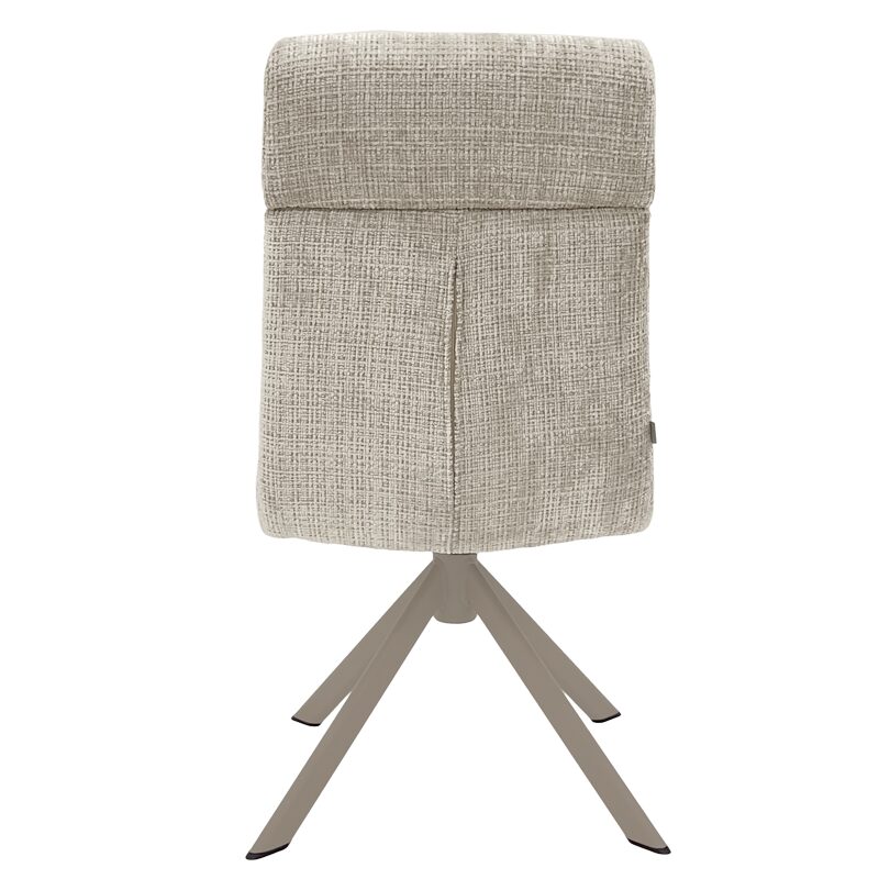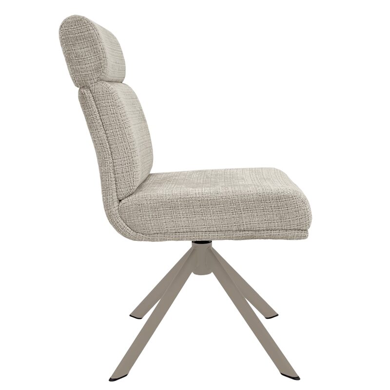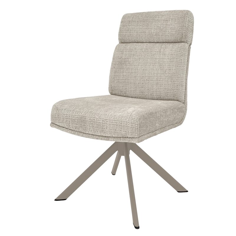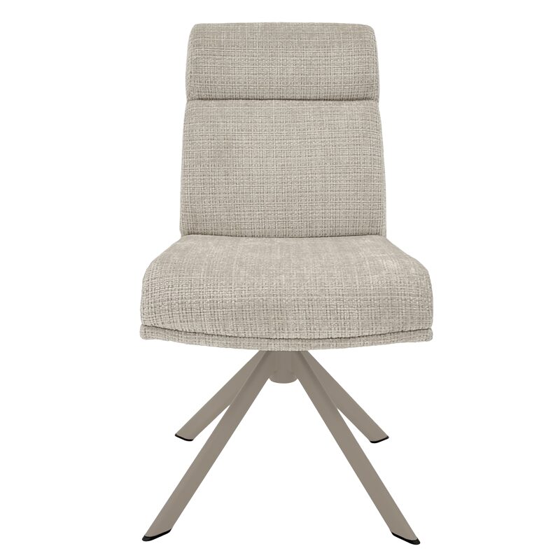 Трапезният стол TURI предлага изключителен комфорт с меката си дамаска и покет пружини, съчетавайки стил и удобство. Металната основа в крем-перла цвят добавя елегантност, а функции като 360-градусово въртене и люлеене осигуряват свобода при сядане. Идеален за модерни трапезарии, този стол съчетава висококачествени материали и съвременен дизайн.